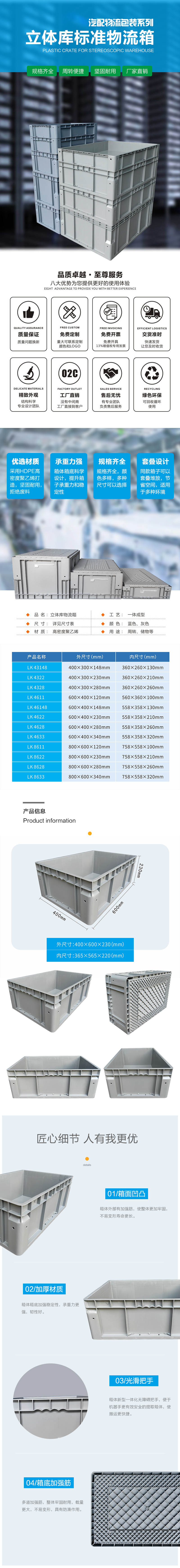 外尺寸:600*400*230mm 內(nèi)尺寸:565*365*220mm 材質(zhì):PP 重量:2300g