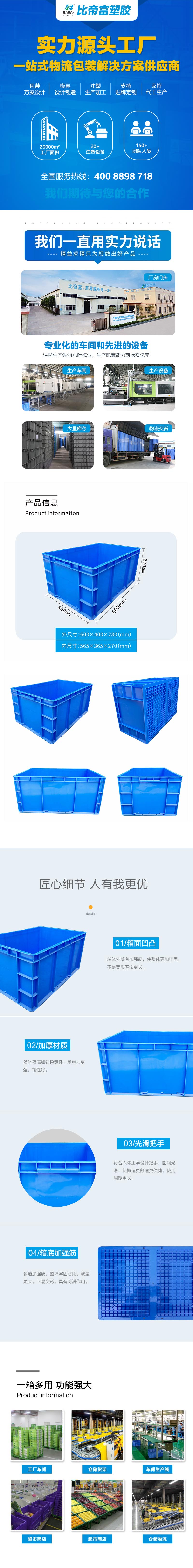 外尺寸:600*400*280mm 內尺寸:565*365*270mm 材質:PP 重量:2100g